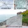 When annealed glass is broken, it will break into shape pieces which is dangerous to humans. When tempered glass is broken, it will form small particles with obtuse angles. When laminated glass is broken, the glass particles will still adhere to the interlayer material. As are shown in below pictures. Generally speaking, laminated glass is safer than tempered glass and annealed glass.